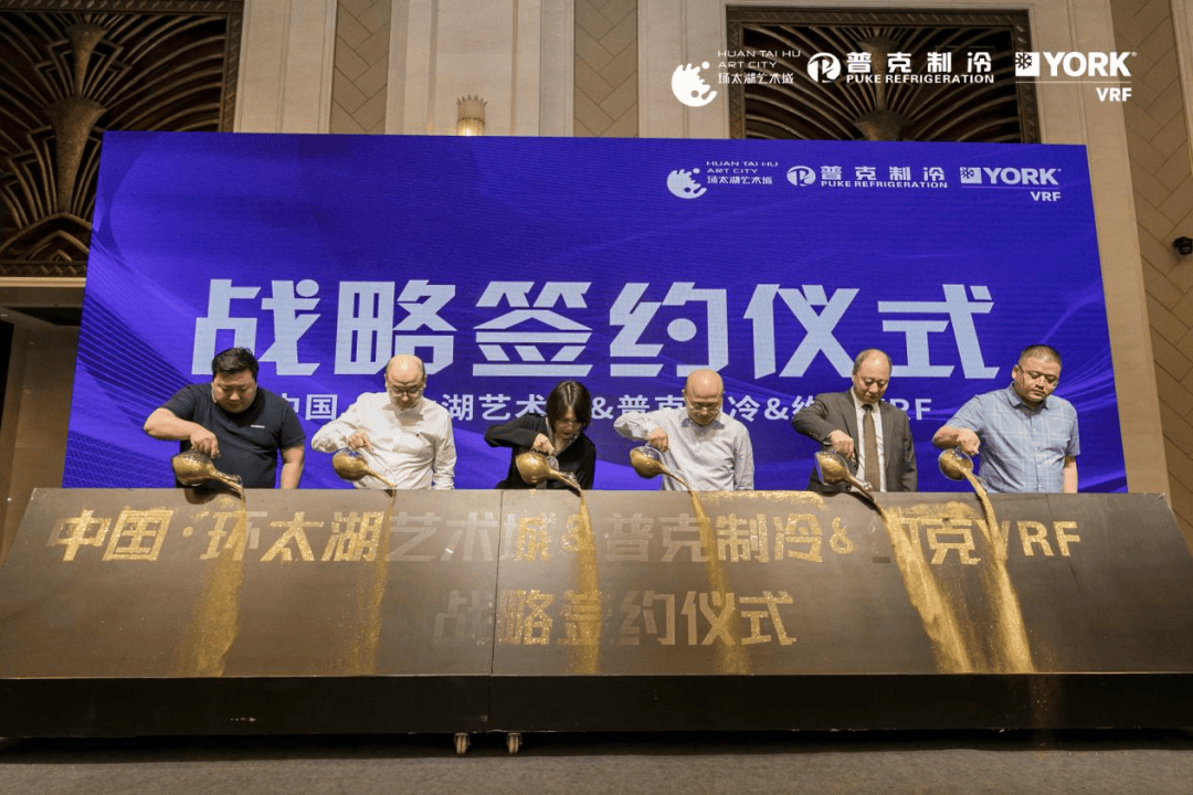 签约仪式最后,台上各领导共同完成了“中国·环太湖艺术城&普克制冷&约克VRF战略签约仪式”的注沙仪式,预示着三方合作的正式达成;未来,环太湖艺术城·近园将不断完善现代化居住体验,以建筑高品质人居为标准,带动整个版块的品质飞跃。
